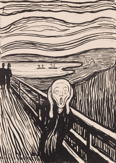 Egy januári estén két barátjával sétált, amikor a nap lenyugodott, és az ég hirtelen "olyan vörössé vált, mint a vér". A barátai továbbmentek, ő azonban megállt, reszketett a szorongástól, és úgy érezte, mintha "egy hatalmas, végtelen sikoly" söpört volna végig a természeten. Nem egy ember ordítása volt ez, hanem maga a létezésé.