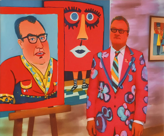 Mérete: 50x60 cm Technika: AI generált kép, vászonra nyomtatvaA kép címe: "drMáriás első találkozása a mesterséges intelligenciával DALL-e és Google közös műtermében."